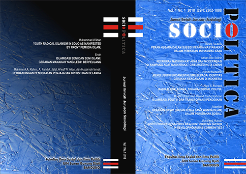 The journal's audience is educated readers and researchers from universities and higher education institutions, policymakers, administrators, and other interested parties. The Socio Politica : Jurnal Ilmiah Jurusan Sosiologi has been published two times a year since 2012 by the Department of Sociology Faculty of Social Science and Politics UIN Sunan Gunung Djati Bandung.