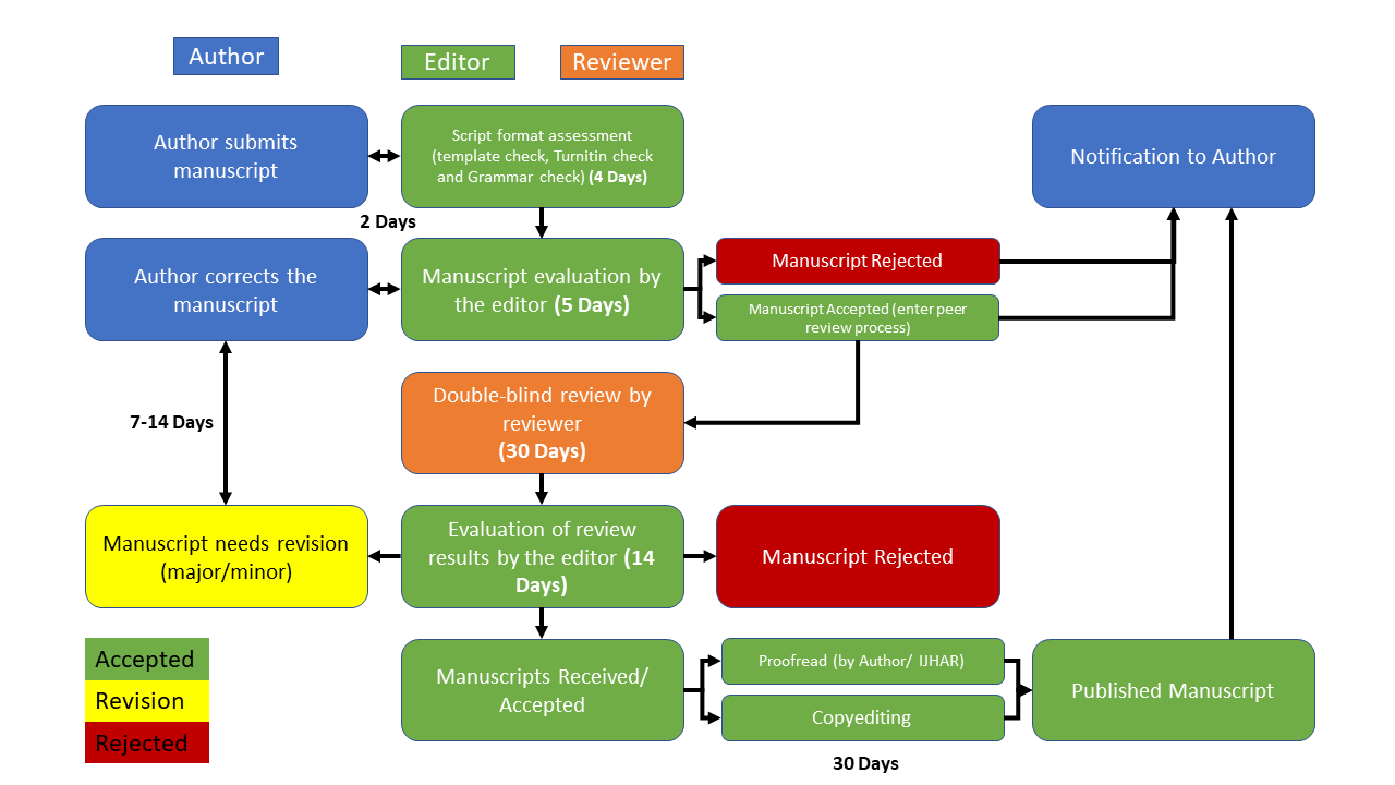 - The review process will consider novelty, objectivity, methods, scientific impact, conclusions, and references. The reviewers ensure the quality of the articles of their title, abstract, methods, result and discussion, and conclusion. Besides, the reviewers also verify the plagiarism and ethics of publication.