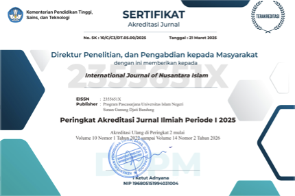 The Authors submitting a manuscript do so on the understanding that if accepted for publication, copyright of the article shall be assigned to International Journal of Nusantara Islam, Sunan Gunung Djati State Islamic University.