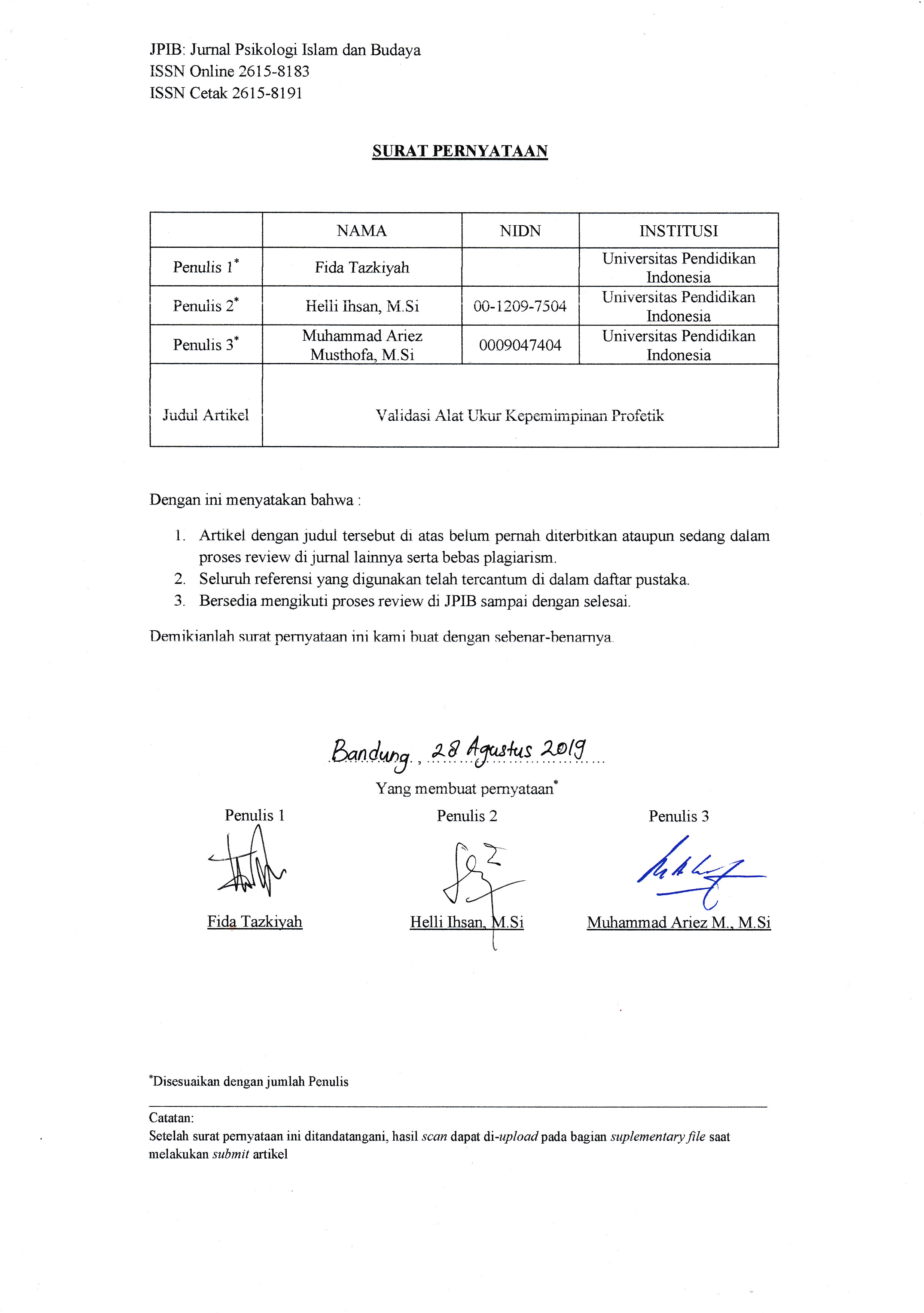 Nisrina, H. E., Faruq, M. I., Masruroh, R., Nurlatifah, S. S., & Nisa, S. K. (2020). Konstruksi alat ukur kepemimpinan spiritual dalam keluarga. JPIB: Jurnal Psikologi Islam dan Budaya, 3(1), 37-46. https://doi.org/10.15575/jpib.v3i1.6526