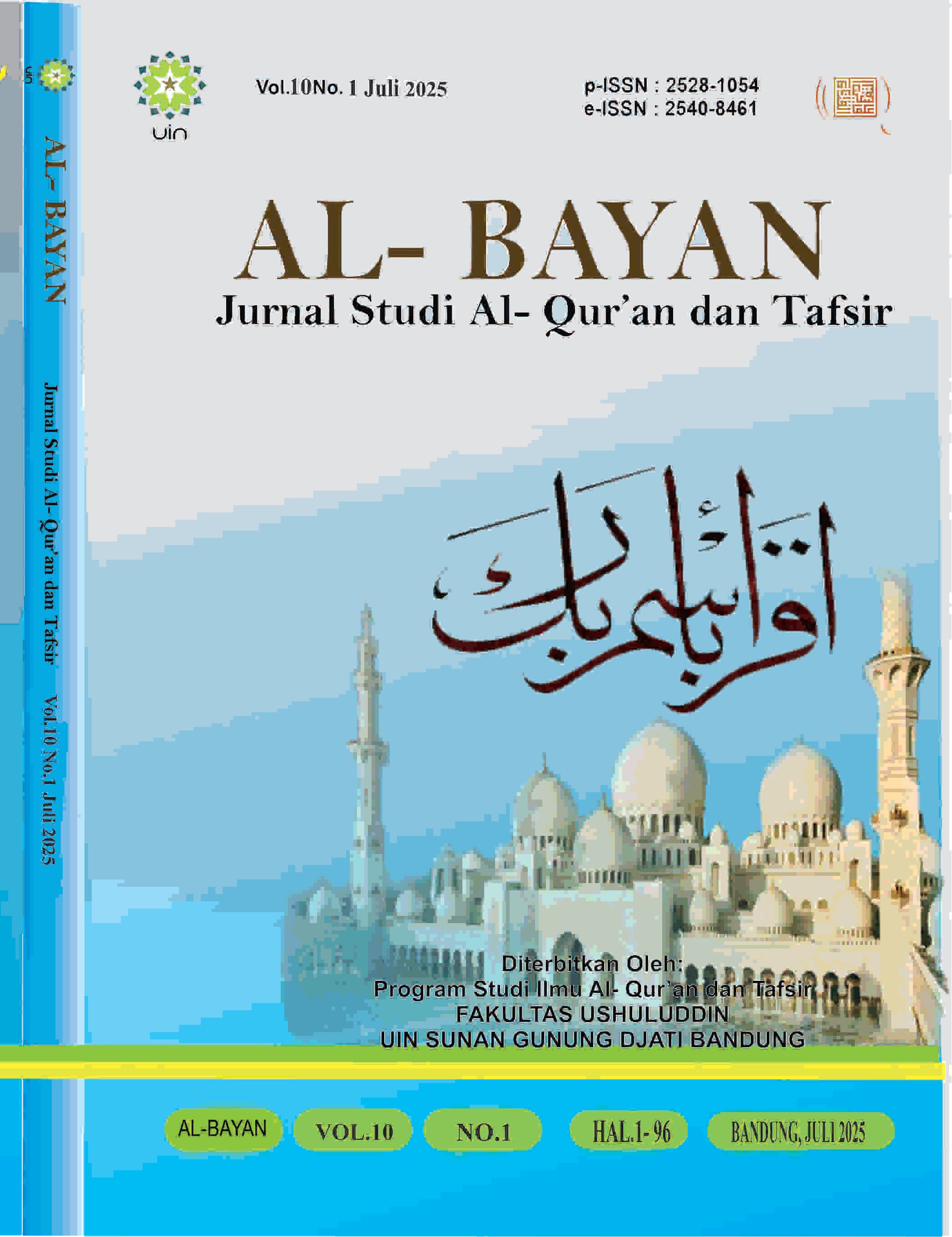 Journal Title: Al-Bayan : Jurnal Studi Ilmu Al-Qur'an dan Tafsir ISSN: 2528-1054 (Print) | 2540-8461 (Online)Citation Analysis: DOAJ | Sinta | Google Scholar | Moraref | Crossref | Demensions |Garuda |Editor-in-Chief: Prof.Rosihon Anwar, M.Ag