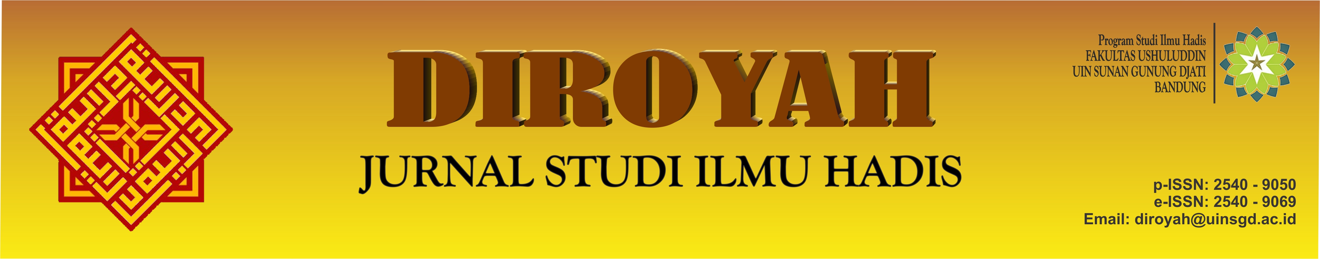 Diroyah: Jurnal Studi Ilmu Hadis is a peer-reviewed journal dedicated to publishing the scholarly study of Hadith from many different perspectives. Particular attention is paid to the works dealing with: Hadith Studies with various perspectives of law, philosophy, history, art, theology, sociology, anthropology, political science and others, Hadith sciences, Living Hadith, Hadith Studies accros different areas in the world (The Middle East, The West, Archipelago and other areas), Methodology of Hadith studies, syarah hadith (interpretation of hadith). The journal is published binnually, in June and September by Departement of Hadith Studies, Faculty of Ushuluddin, UIN Sunan Gunung Djati Bandung, Indonesia; and collaboration with Asilha; Asosiasi Ilmu Hadis Indonesia, Association of Hadith Studies in Indonesia.