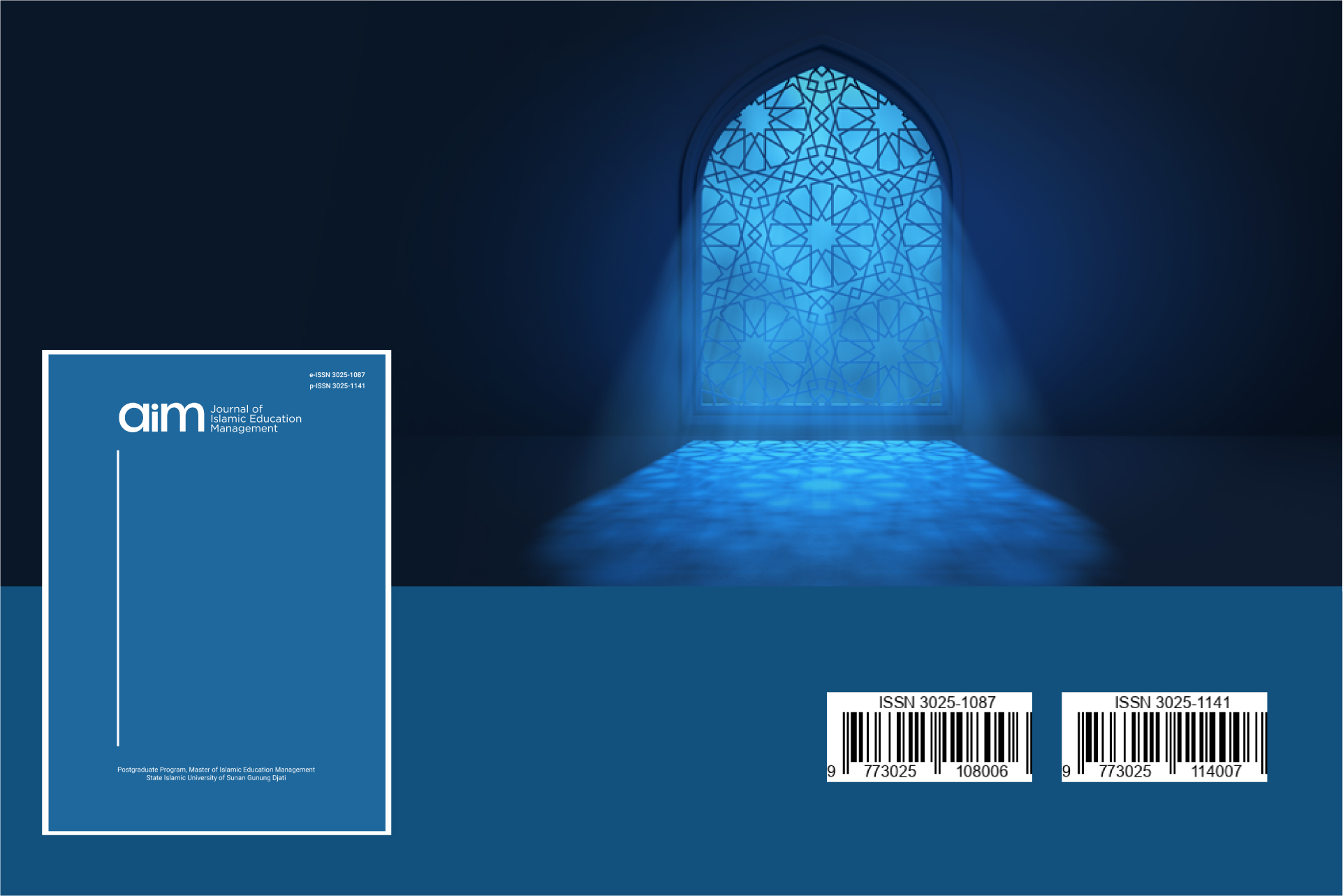AIM: Journal of Islamic Educational Management (p-ISSN 3025-1141; e-ISSN 3025-1087) a peer-reviewed journal on Islamic educational management field and is intended to communicate original research and current issues on the subject. This journal is published by Postgraduate Program of Islamic Education Management Department, UIN Sunan Gunung Djati Bandung. The editors welcome scholars, researchers and practitioners of Islamic educational management around the world to submit scholarly articles to be published in this journal. All articles will be reviewed by experts before being accepted for publication. This journal was established in 2022.