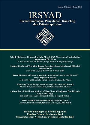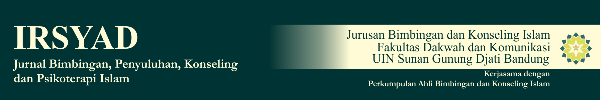 Irsyad: Jurnal Bimbingan, Penyuluhan, Konseling, dan Psikologi Islam is a scientific journal published by the Department of Islamic Guidance and Counseling, Faculty of Da'wah and Communication at UIN Sunan Gunung Djati Bandung since 2008. This journal publishes scientific works resulting from research that develops concepts and theories related to Islamic Guidance and Counseling studies, including Islamic educational counseling guidance, Islamic mental counseling guidance, Islamic career counseling guidance, sakinah (harmonious) family counseling guidance, post-disaster counseling guidance, Islamic spiritual counseling guidance; Islamic outreach: social religious outreach, drug abuse prevention outreach, family planning outreach, youth outreach; BKI media: Islamic e-counseling; Islamic training, and Islamic motivation. Manuscripts submitted to the journal editor before publication will undergo assessment through double blind review, meaning that both authors and reviewers do not know each other's identities.