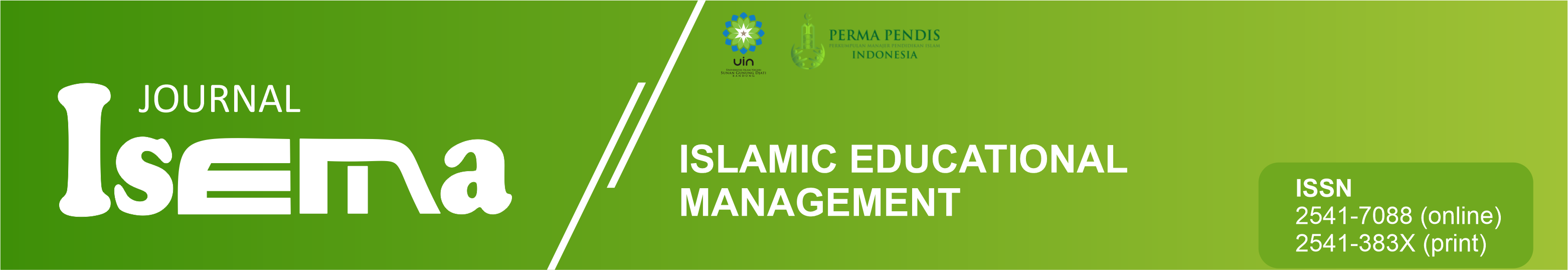ISEMA: Islamic Educational Management is a journal published by the Laboratory of Bachelor Program in Islamic Educational Management, Faculty of Tarbiyah and Teacher Training UIN Sunan Gunung Djati Bandung in collaboration with Perkumpulan Manajer Pendidikan Islam Indonesia (PERMA PENDIS) or The Association of Islamic Education Managers based on MoU number: 002/J-IsEMa/VI/2019, to facilitate lecturers, researchers and managers of Islamic Educational in schools/madrasa in publishing their research. This journal published 2 editions in one year.