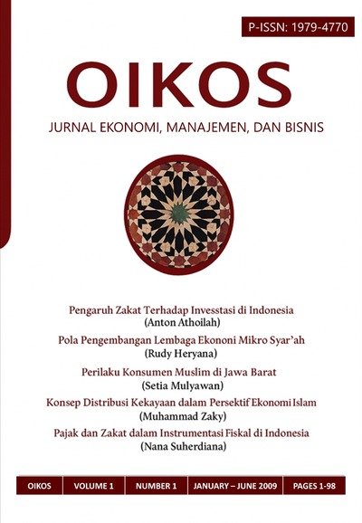 OIKOS is a periodical scientific journal that publishes various results of studies and research, literature review, and other scientific works whose scope covers the field of economics, business and management in monodisciplinary, interdisciplinary, and multidisciplinary manners. The journal aims to expand and create innovative concepts, theories, paradigms, perspectives and methodologies in the above said scope. The Journal is published twice a year (january and july) by Faculty of Sharia & Law, Sunan Gunung Djati State Islamic University Bandung.